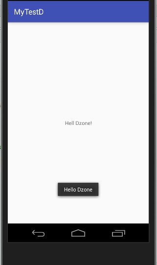 Toast.makeText(getApplicationContext(),"Hello Dzone",Toast.LENGTH_LONG).show();